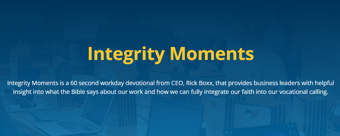 Integrity Moments is a 60 second workday devotional from that provides business leaders with helpful insight into what the Bible says about our work and how we can fully integrate our faith into our vocational calling.